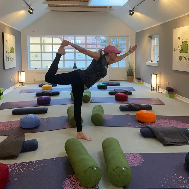 Vi strækker, smidiggør og styrker kroppen med rolige stillinger (Asanas), kombineret med vejrtrækning.